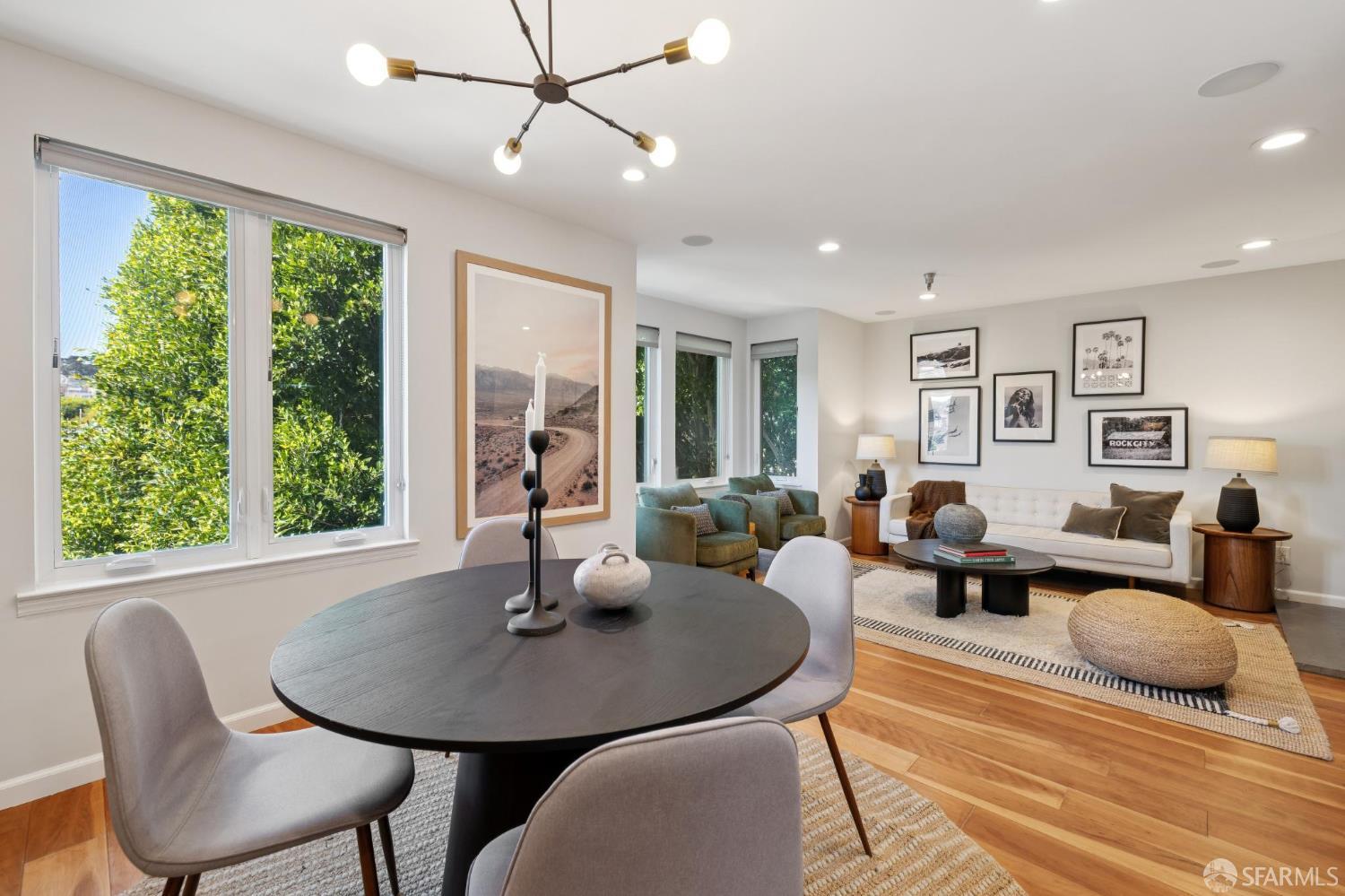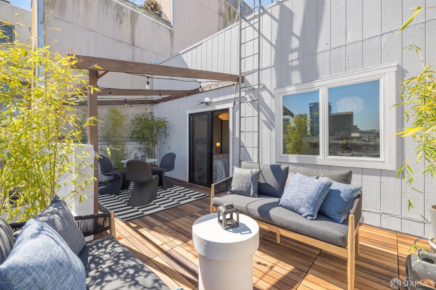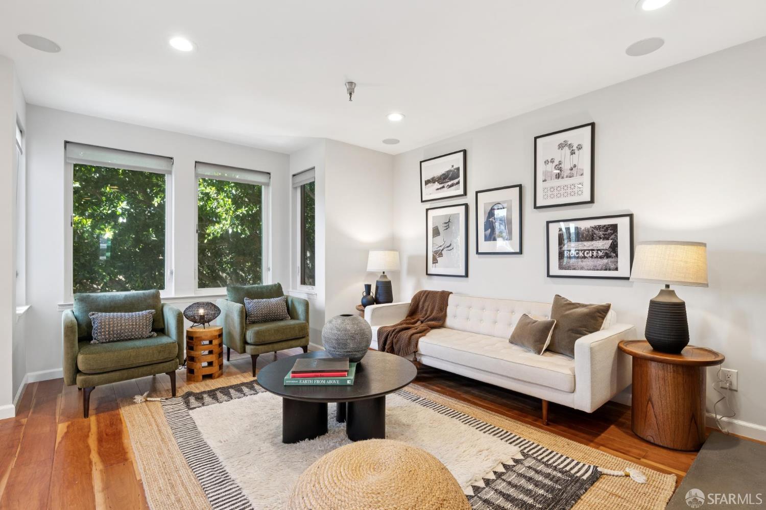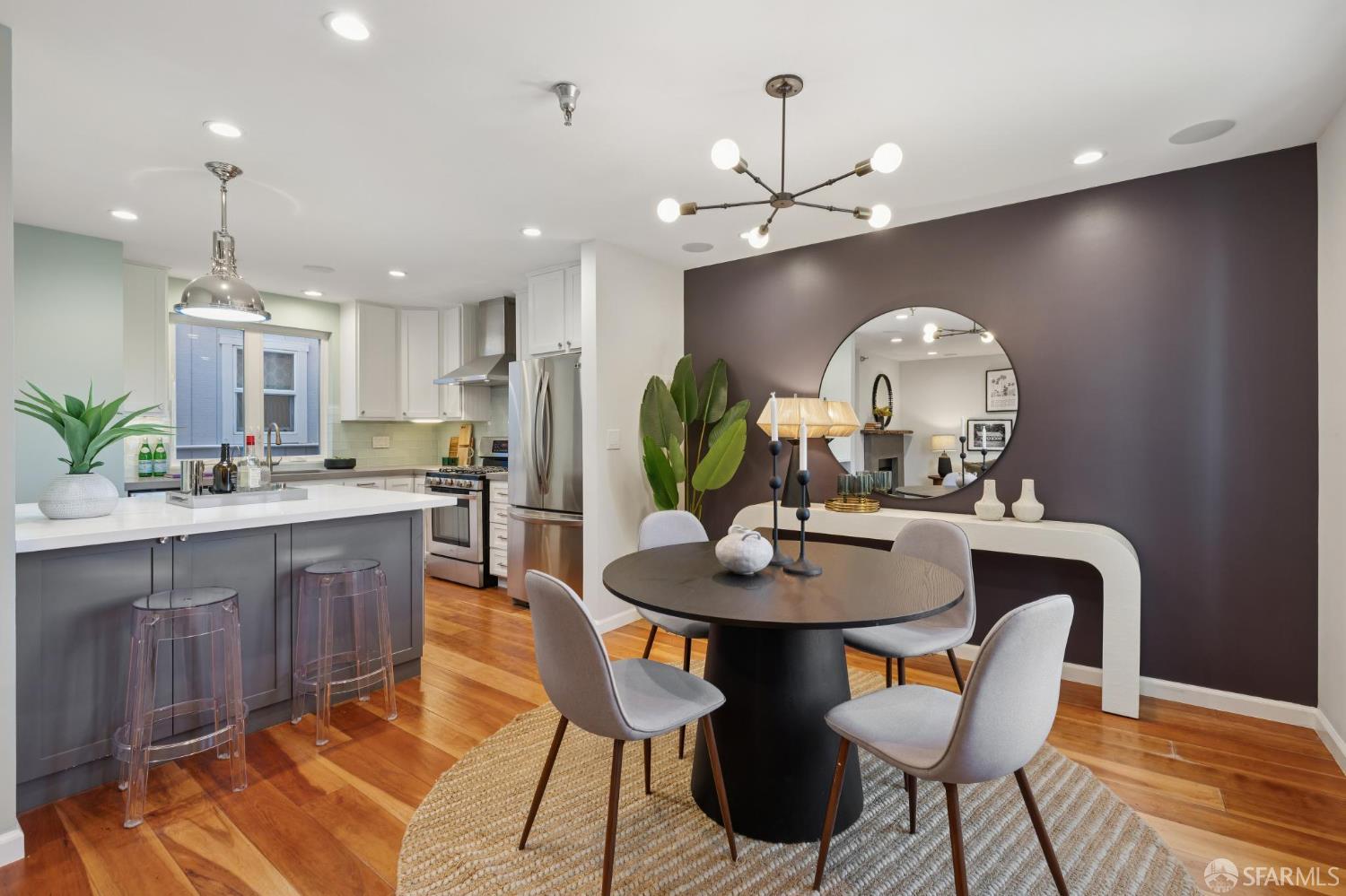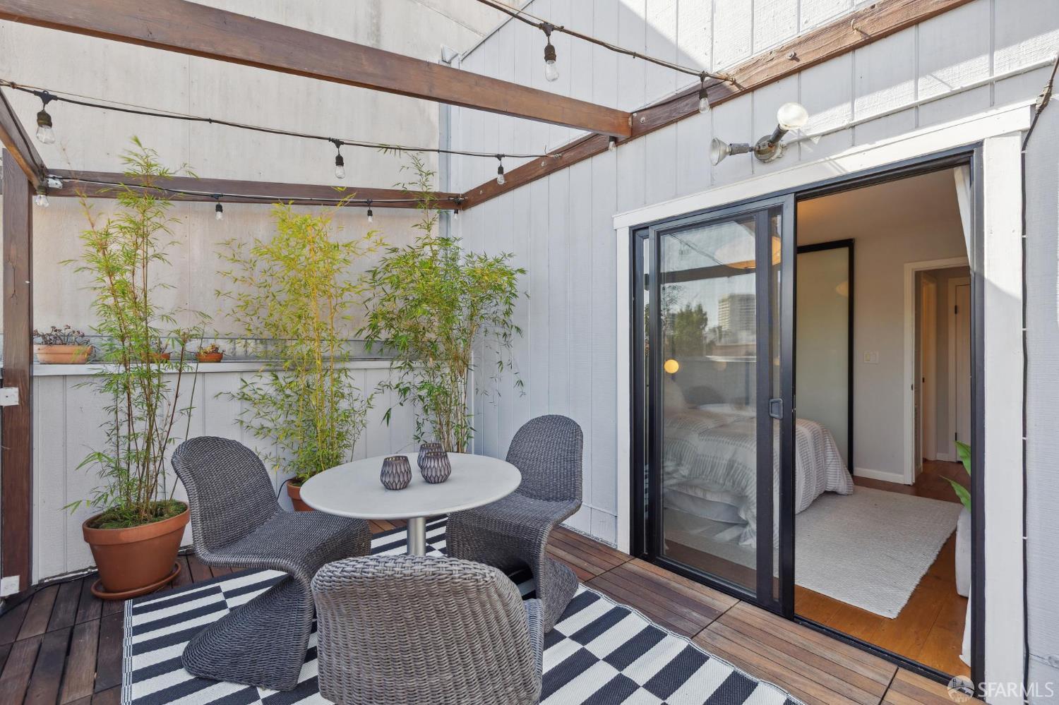This beautifully remodeled top floor flat is nestled in a boutique three-unit building. Located just one block from the renowned Hayes Valley shops, restaurants and the new Trader Joes, this home places you at the heart of one of San Francisco's most desirable neighborhoods. This urban retreat has a spacious deck with Bison IPE tiles that receives abundant sunlight and offers captivating views of the surrounding neighborhood, including the iconic gold-accented roof of City Hall. The open-concept floorplan highlights beautiful wood flooring, built-in speakers and new lighting fixtures creating a welcoming atmosphere ideal for hosting guests. The remodeled kitchen features a large island, sleek quartz counters, wine fridge and a striking glass tile backsplash. The inviting living room offers a wood burning fireplace for cozy evenings while the dining room has lovely city views. Both bathrooms have been remodeled with quartz counters and Fire Clay Tile. Lighting throughout the residence has been exclusively upgraded with fixtures from Herman Miller, Rejuvenation and Schoolhouse Electric. The Building improvements consist of a newer roof, windows, exterior paint and siding. Laundry, storage,& deck irrigation included.